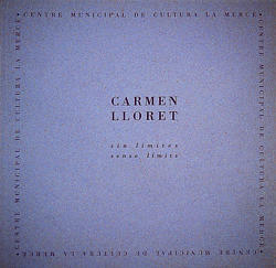 Carmen Lloret: sin límites = sense límits: Centre Municipal de Cultura La Mercé, del 8 al 30 de octubre de 1997 [exp.indiv.]. Ferrada, Alfonso (col.); Calpe, José R. (col.); Gual Almarcha, Elvira (col.)... et al. Borriana: Ajuntament, 1997, 22 p. ISBN 849231270x.