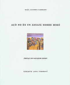 Açó no és un assaig sobre Miró: Girarte, del 12 al 30 de gener, Altea [exp.indiv.]. Guerra Garrido, Raúl; Espriu, Salvador (prol.). Altea: Ajuntament; Alcoy: Marfil, 1993, 126 p. (Ivori-Art). ISBN 842680831x.